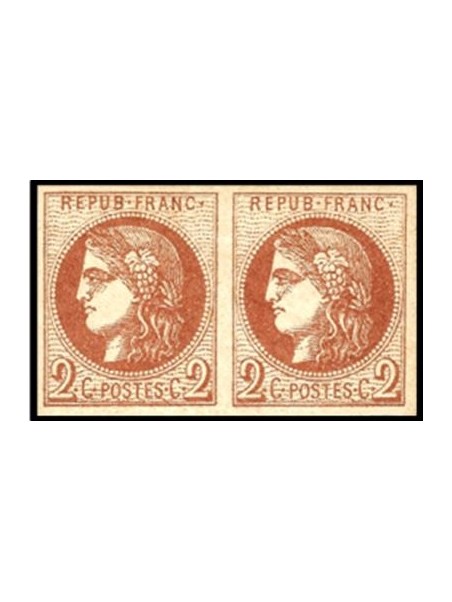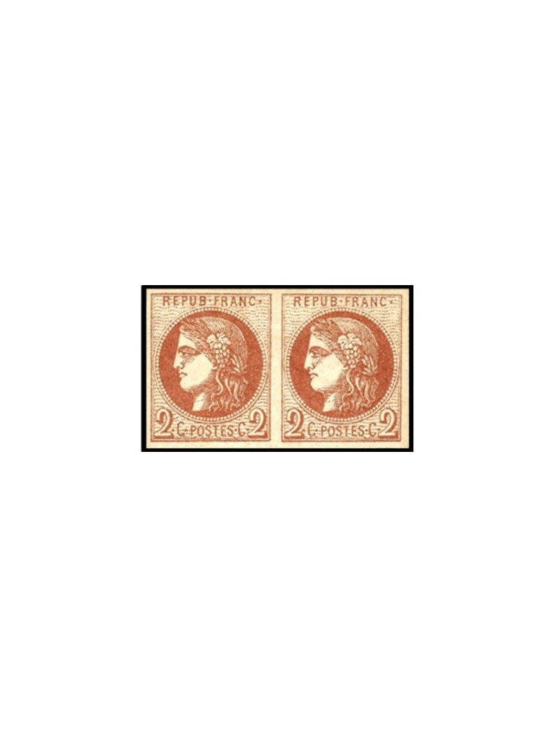 2 centimes rouge brun report 2 en paire, neuve avec gomme, traces de charnière. Quatre belles marges bien équilibrées. Très beaux. Signés.