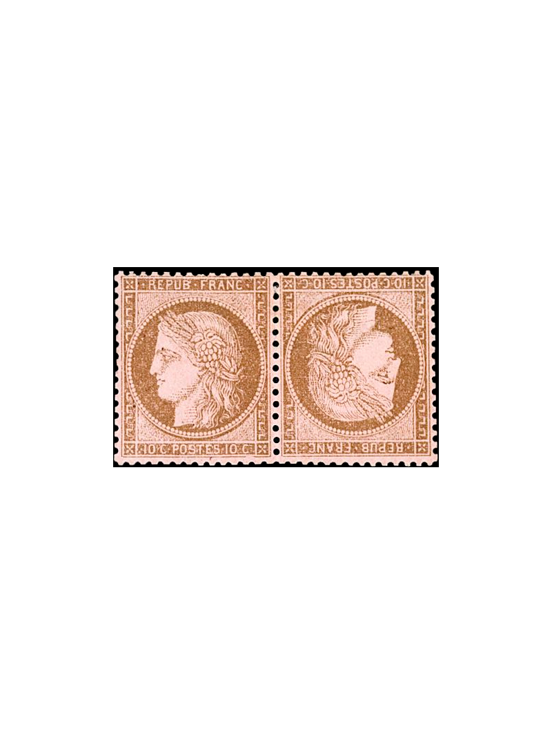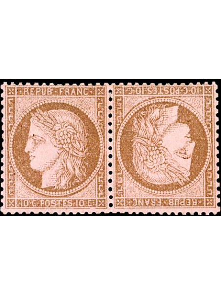 10 centimes brun sur rose, neuf avec gomme en paire tête-bêche, superbe centrage pour ce timbre. Trace de charnière retirée. Superbe. Signé CALVES. Certificat.