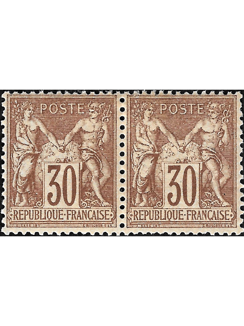 30 centimes brun sur lilas type I neuf avec gomme paire avec excellent centrage, de très belle qualité sans charnière. Cote 1400€ + 50 % sans charnière = 2800 €. Signé avec certificat.
