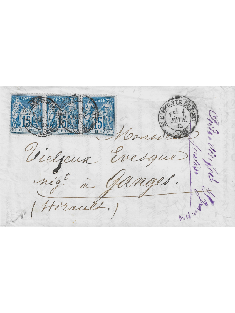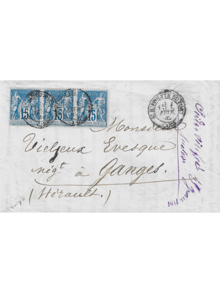 30 centimes brun clair type I, oblitéré par le cachet à date de Clermont Ferrand sur une lettre à destination de St Flour dans le Cantal. Superbe lettre.