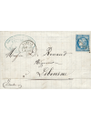 Bordeaux 20 c bleu de superbe qualité oblitéré par le losange gros chiffres 2782 sur lettre de Paris déposée à Pantin par passeur, pour Libourne. Au recto, le cad type 17 de Pantin le 12/04/71. Certificat ROUMET.