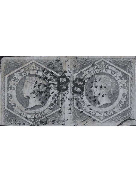 Six pence gris foncé brun en paire avec de belles marges oblitéré 88.