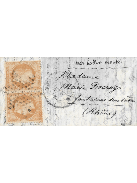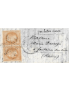 Empire Lauré 10 centimes bistre en paire de très belle qualité, oblitéré par l'étoile pleine, sur une lettre à destination de Fontaine sur Saône. Au recto, le cachet à date de type 17 avec section de levée intermédiaire. Au verso, le cachet d'arrivée le 8 novembre. TB. Signé Brun.