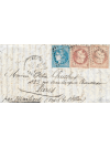 Empire Lauré 40 centimes orange, deux unités dont un exemplaire avec léger défaut (normal pour les boules de moulins) et Emission de Bordeaux, 20 centimes bleu type II, oblitérés par le losange gros chiffres 472. Au recto, le cachet à date de Béziers janvier 1871. Signée Roumet. Superbe composition avec un affranchissement rare.