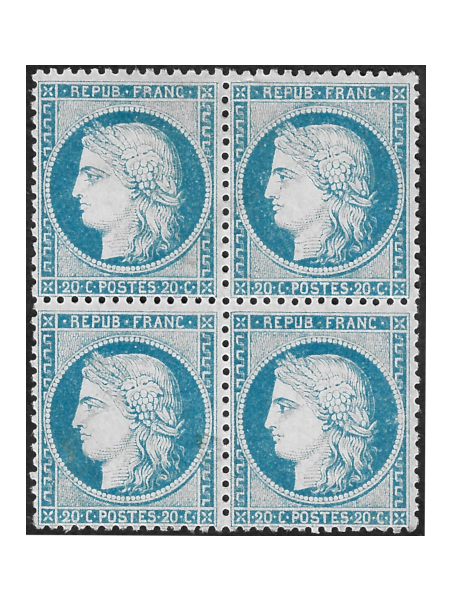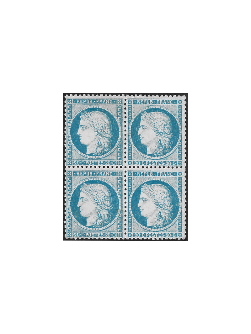 20 centimes bleu bloc de 4, neuf avec gomme avec trace de charnière. Beau centrage pour ce bloc. Signé avec certificat.
