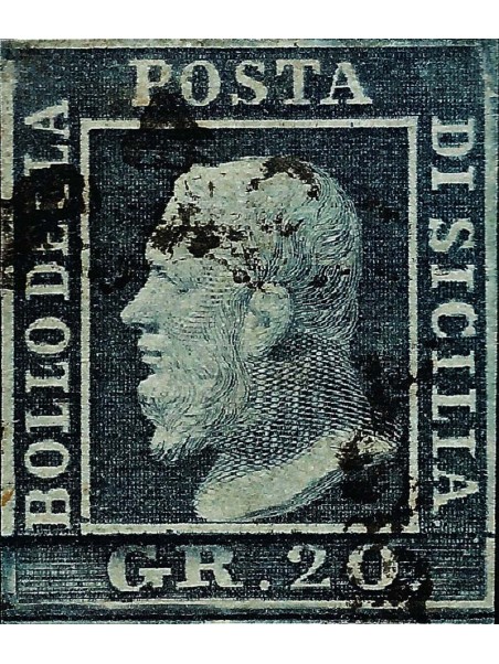 20 granas, ardoise noire, YVERT et TELLIER n°23B, quatre belles marges. Oblitéré. Signé avec certificat.