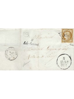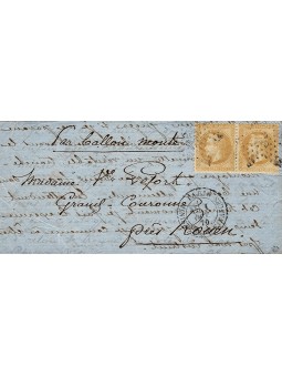 Baj n°3 (variété noir sur gris bleuté) non décrite dans catalogue Yvert et Tellier, sur une lettre avec correspondance en port local. Au recto la marque linéaire de Corneto. Très belle lettre.
